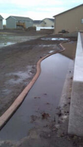 This is a huge issue that MUST be addressed. We don't care if you choose Valley to do your curbing, you must make sure the company you hire takes care of drainage. Every area that may hold water gets a small "v" cut in the concrete to let water out. The drains that are put in around your house are put in the areas where gravity will take water, it must have a place to exit. The cuts we put in are only designed to handle the water from direct rain and snowmelt, your downspouts must be extended over the top of the curb so the massive amounts of water from the roof will be outside the curb to begin with. Water may not exit these drains before it pools against the house and starts to go into basement, it is imperative that the spouts are extended.