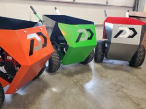 If you have existing grass it will not be effected by our machines. The grass in the area the curb is laid is trenched to install your curbing. Out side that area the grass remains the same. We transfer the concrete using a Piledriver, which has large turf tires and don't tear up the grass. You curb is extruded through a curb machine like this, which we mfg. The concrete is mixed onsite with a specialized trailer and mortar mixer. We are totally self contained and will need nothing from you like water or elec. Very minimal disturbance to your property. You must understand tho that there may be very small minute leftovers next to curb or in the grass which is easily picked up.